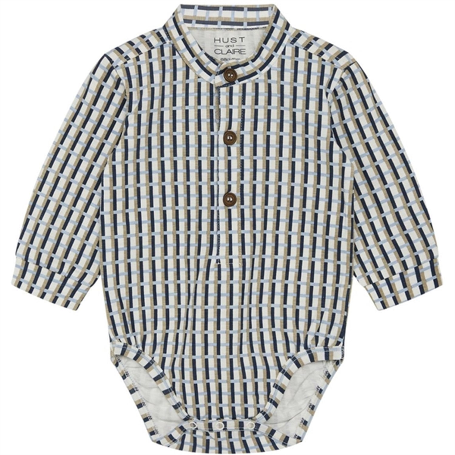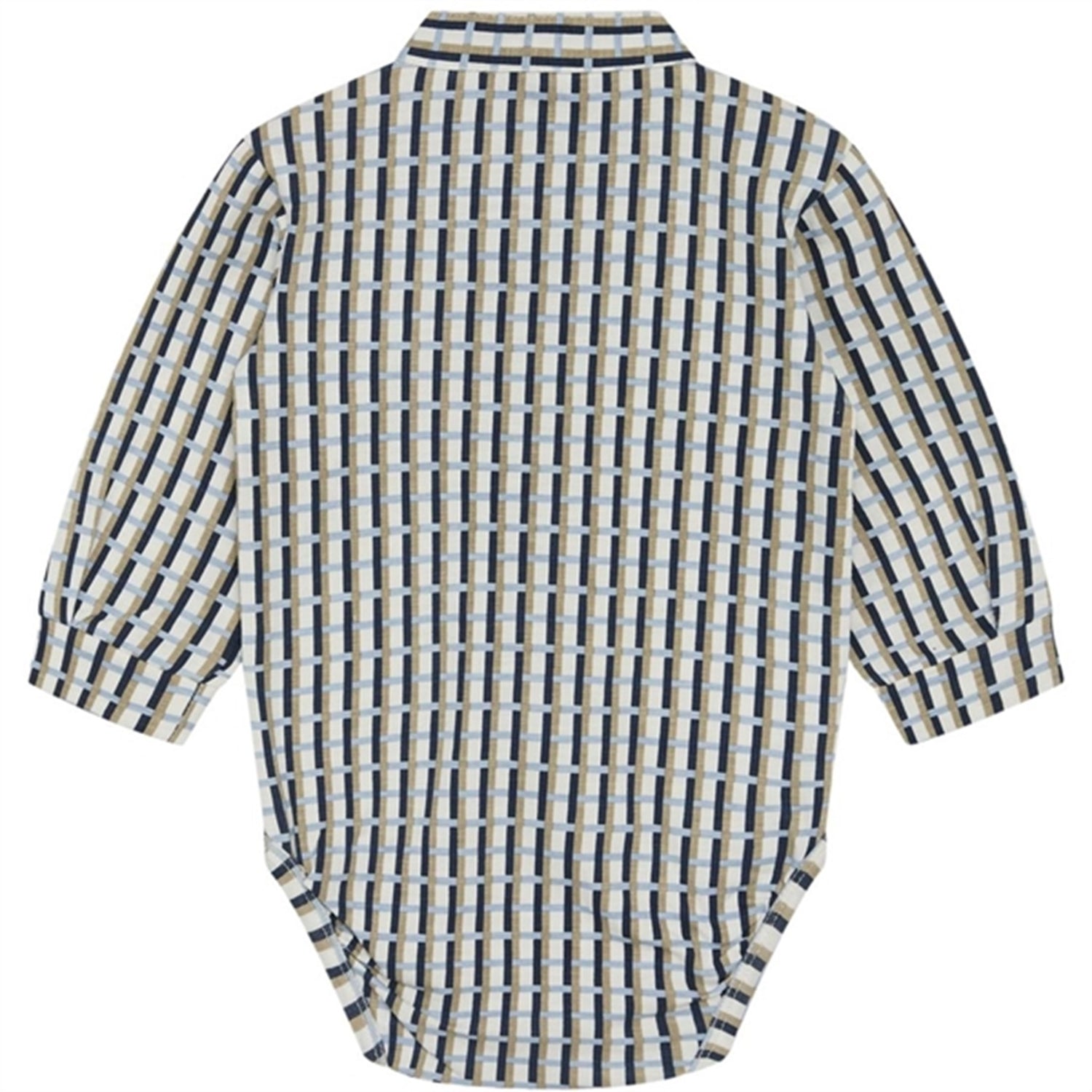 Long-sleeved bodysuit in checked stretch cotton. Buttons down the middle on the front and between the legs.