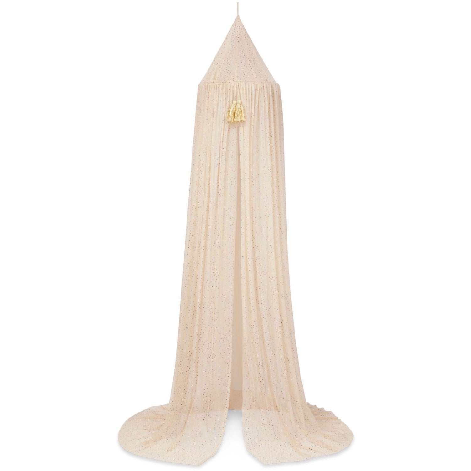Introducing the Konges Sløjd Bed Canopy Etoile Multi Sparkle - the perfect accessory to create a magical atmosphere in your child's room. This bed canopy is designed with attention to detail and transforms any bed into an enchanting oasis.