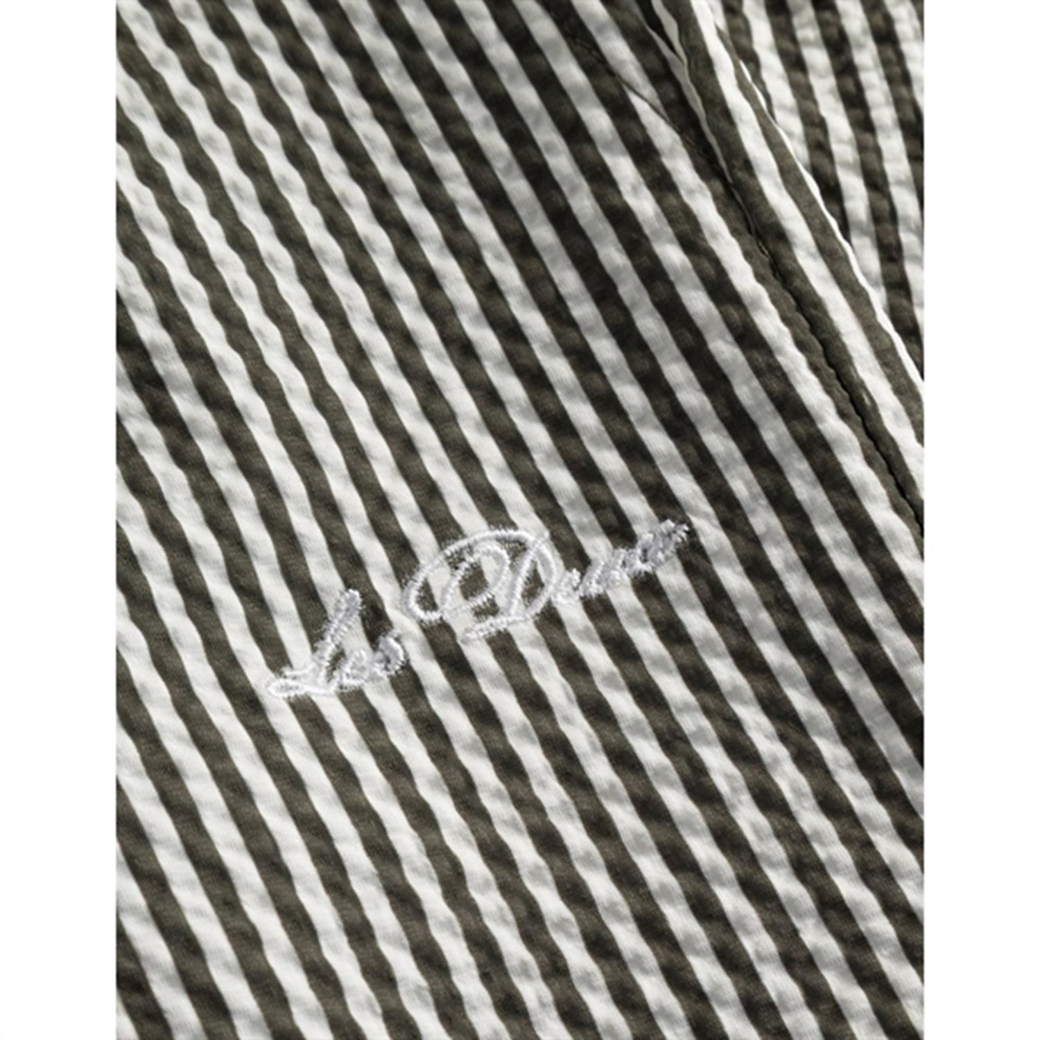 Les Deux Kids Olive Night/Ivory Stan Stripe Seersucker Swim Shorts