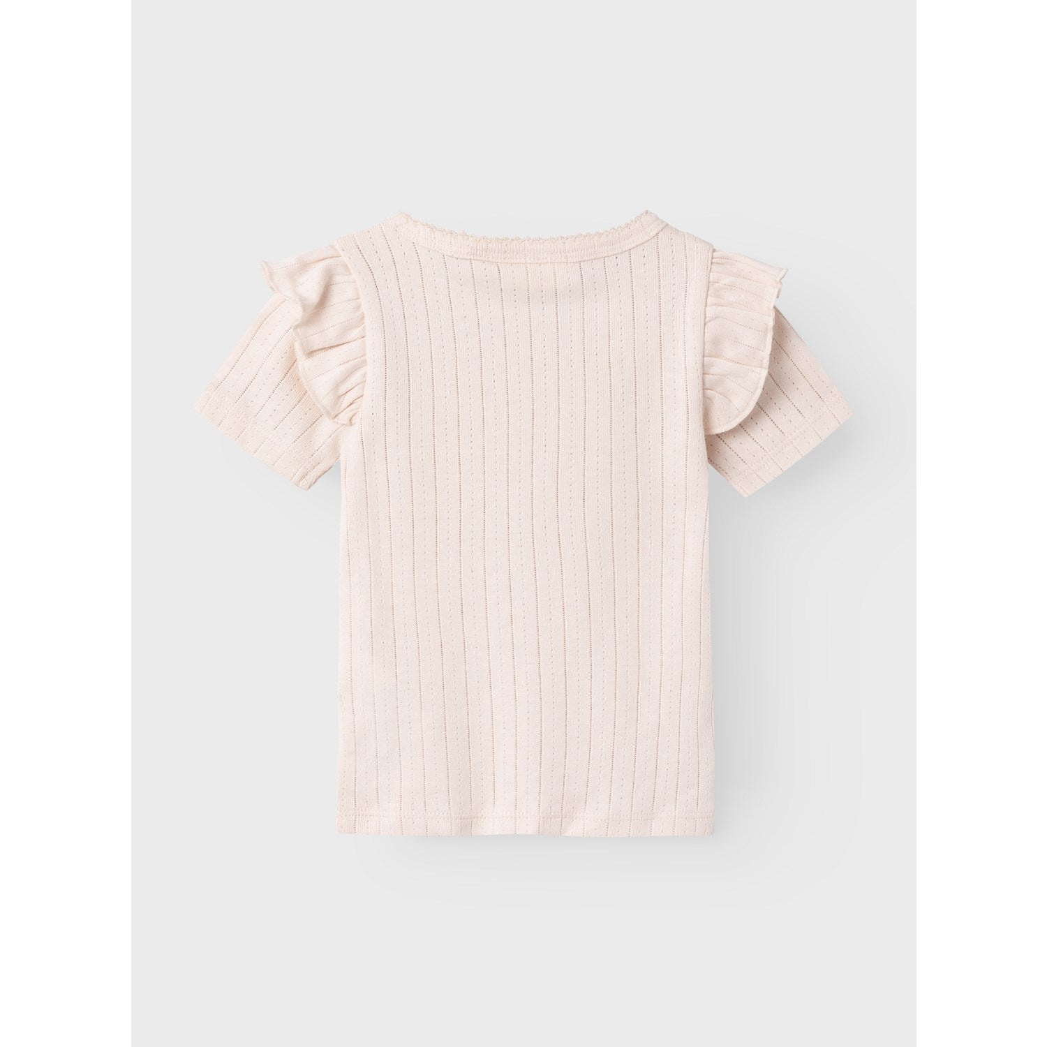 Get ready to style up your little one with the Lil'Atelier Shell Rachel Nan Slim T-shirt! This playful tee features dropped stitches for a unique pattern and a cute touch. With a round neck, short sleeves, frills, and a label detail, it offers a slim fit for a trendy look. Made from 50% organic cotton and 50% TENCEL™ Modal, this T-shirt is perfect for everyday wear. Let your child stand out in comfort and style with this adorable addition to their wardrobe from Luksusbaby.