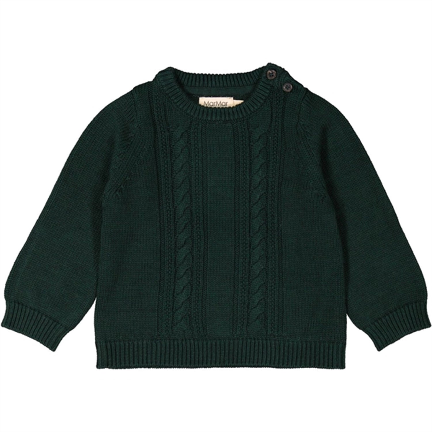 Sweater with button closure on the left shoulder.