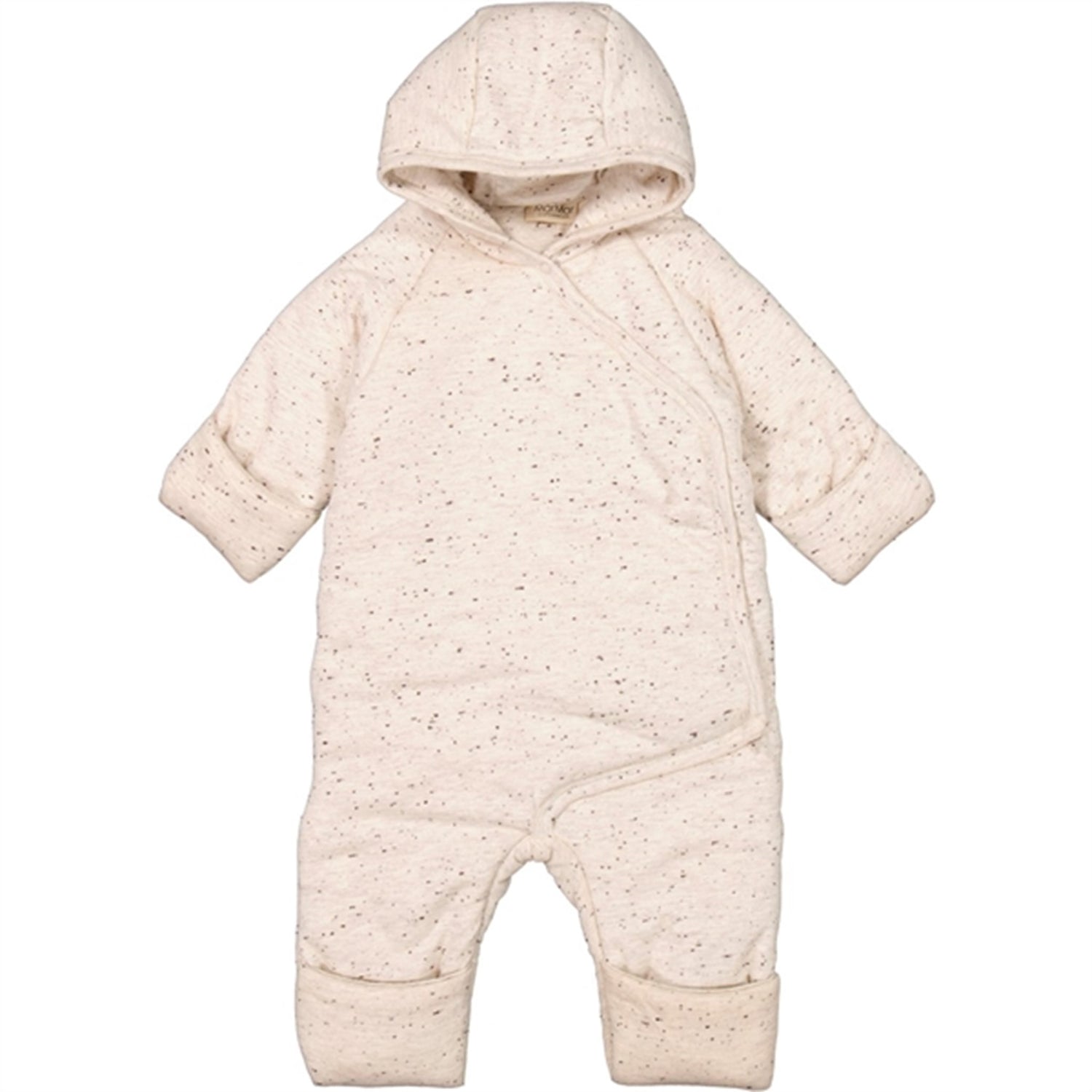 - Warm romper with polyester filling, hoodie and wrap closure with snap buttons