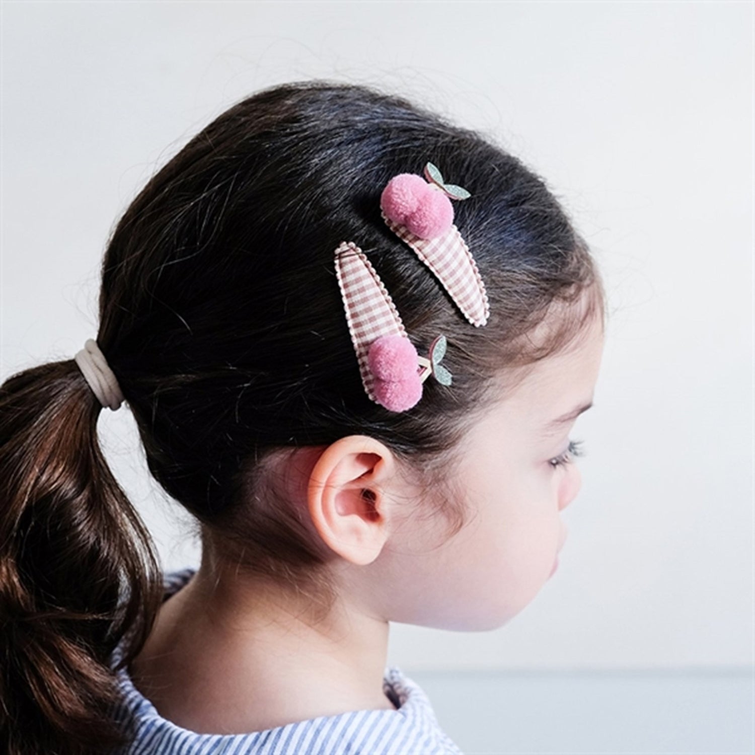 2 large and cute clic clacs with cherry decorations and fabric in a classic checkered pattern.