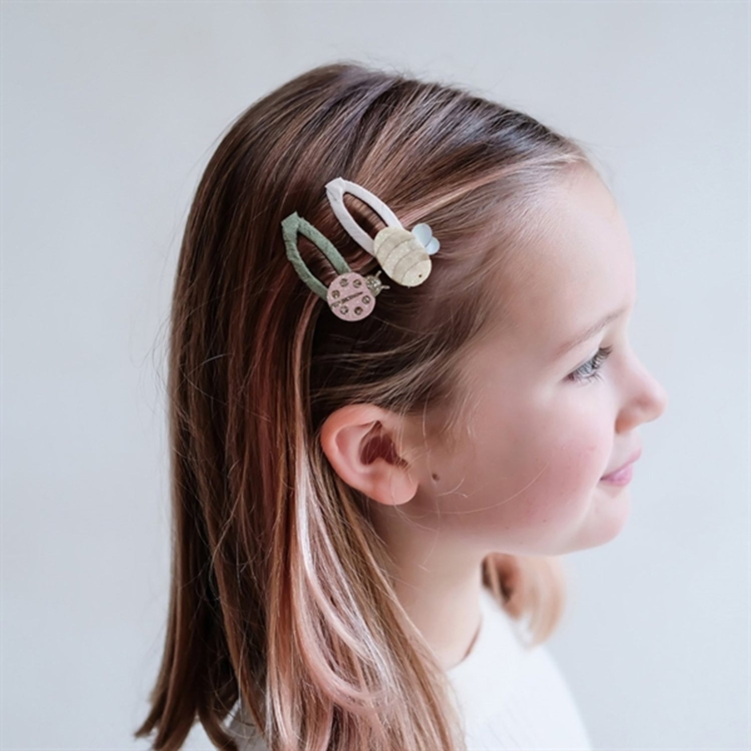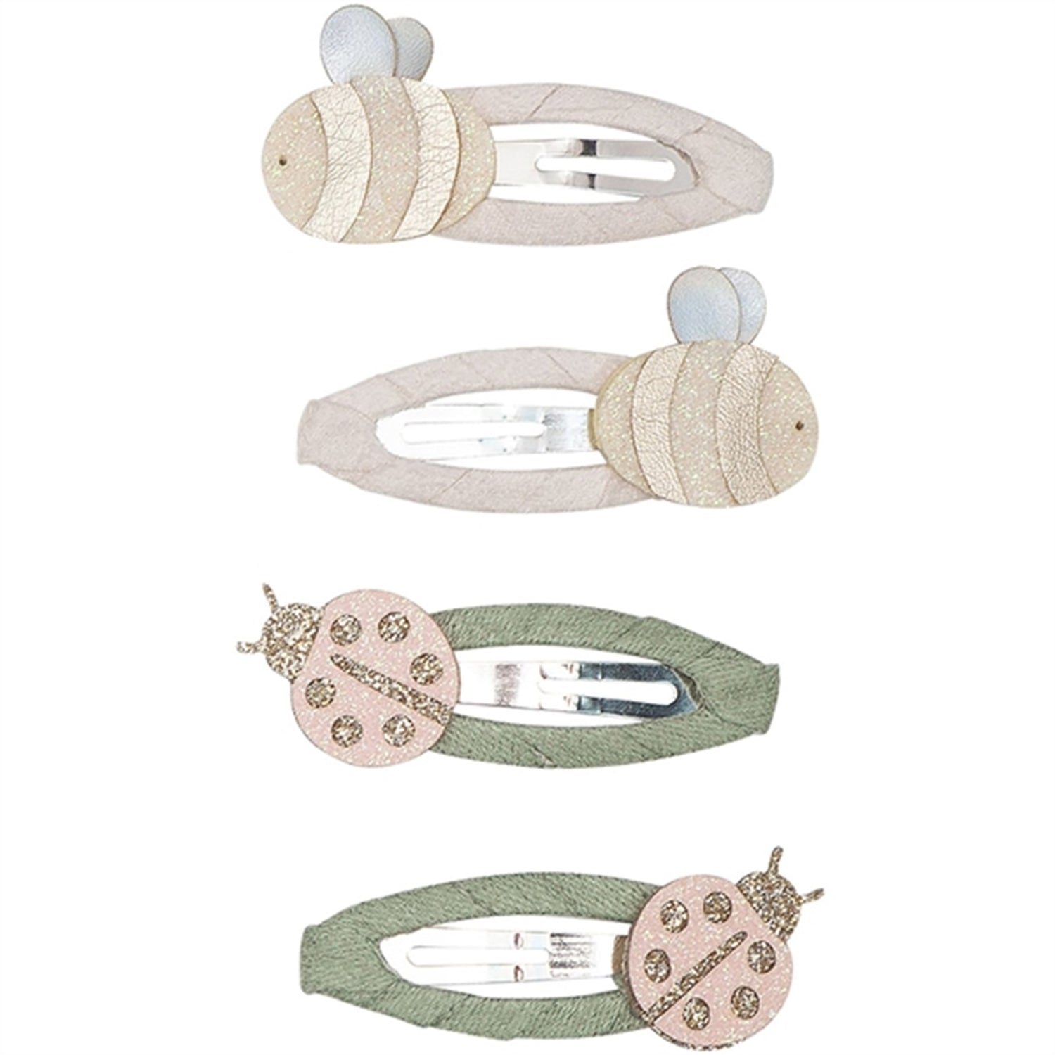 2 pairs of clic clacs with satin ribbon, charming bees and sparkling ladybugs.