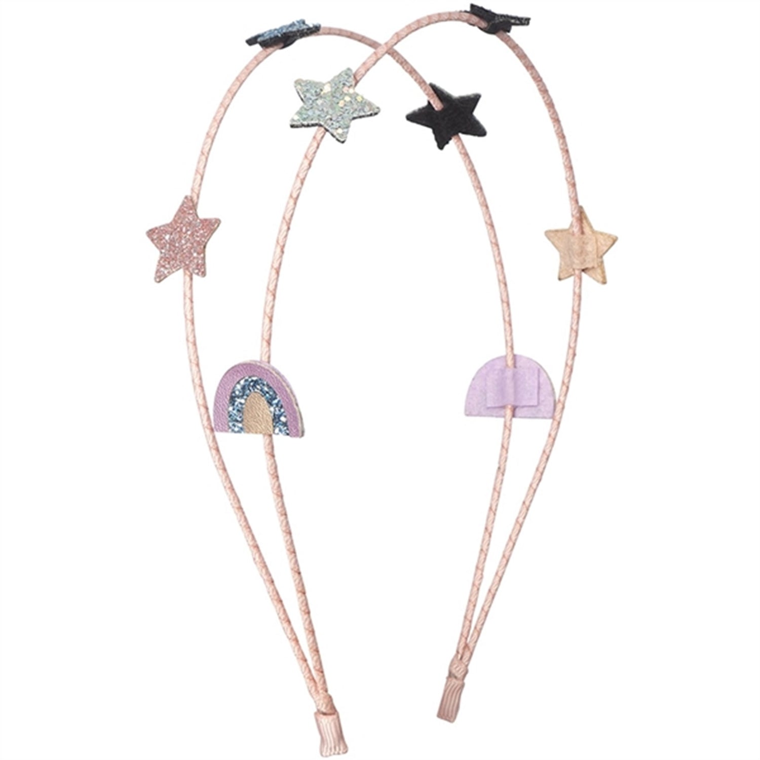 Double alice band with sparkling rainbows and shiny stars.