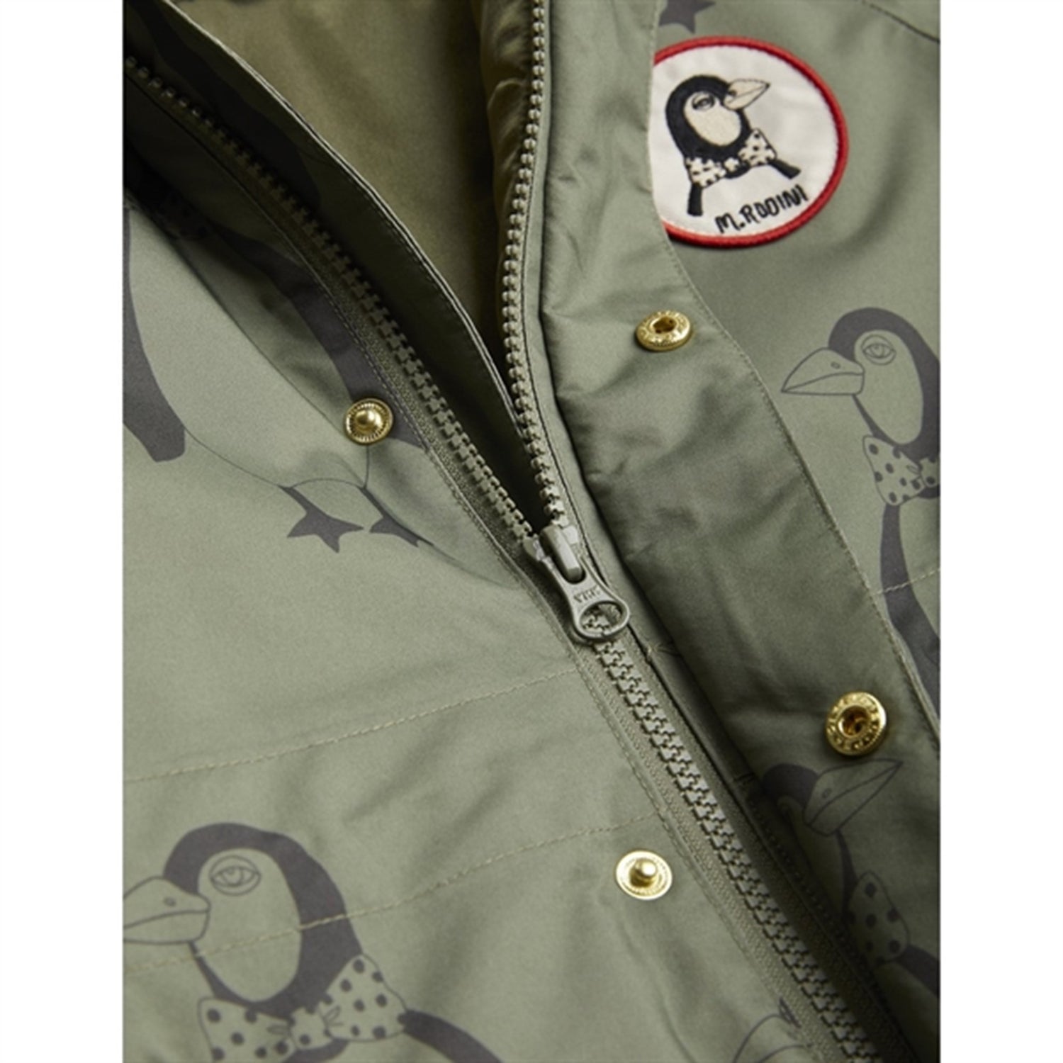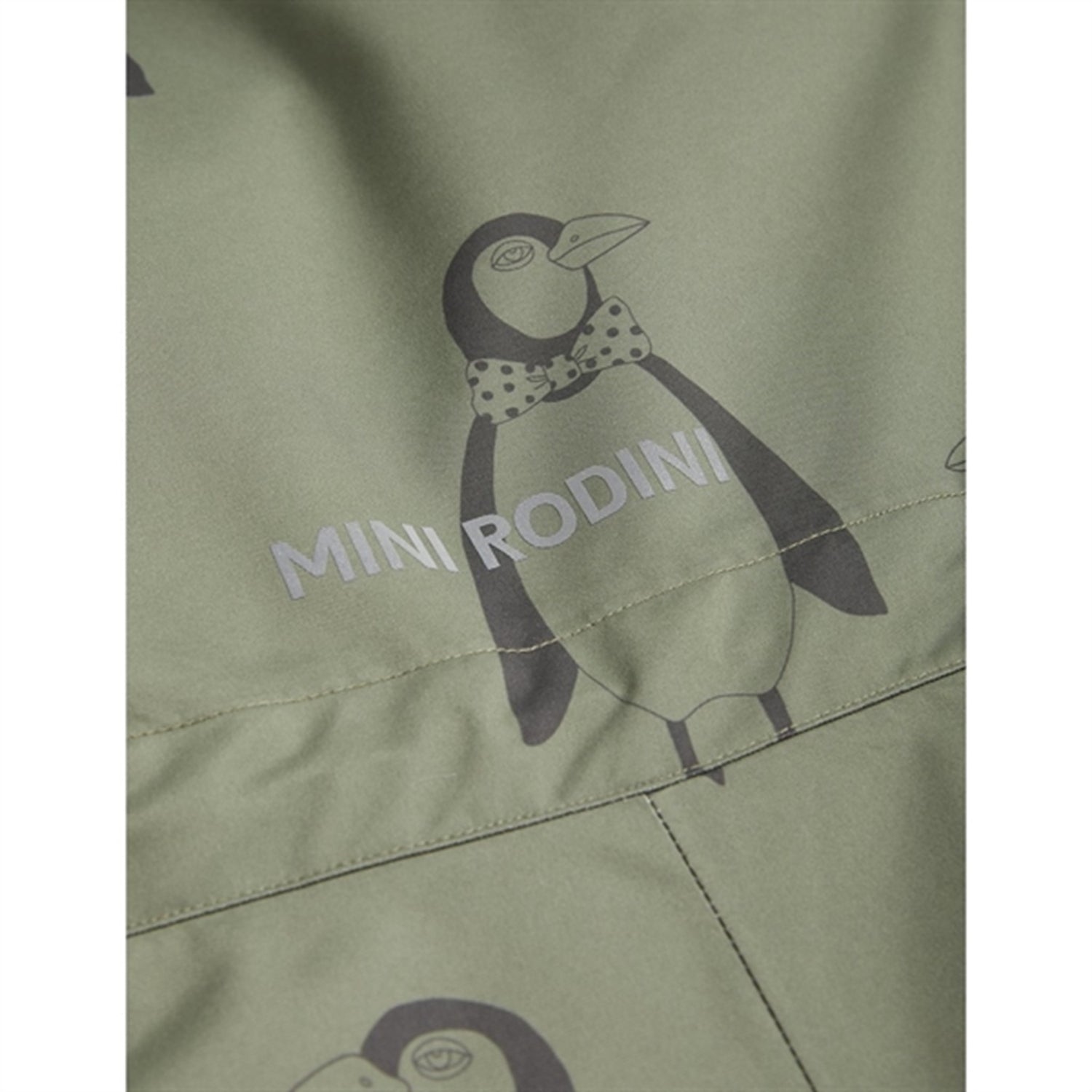 - Green padded wind- and waterproof winter snowsuit with all over Penguin print