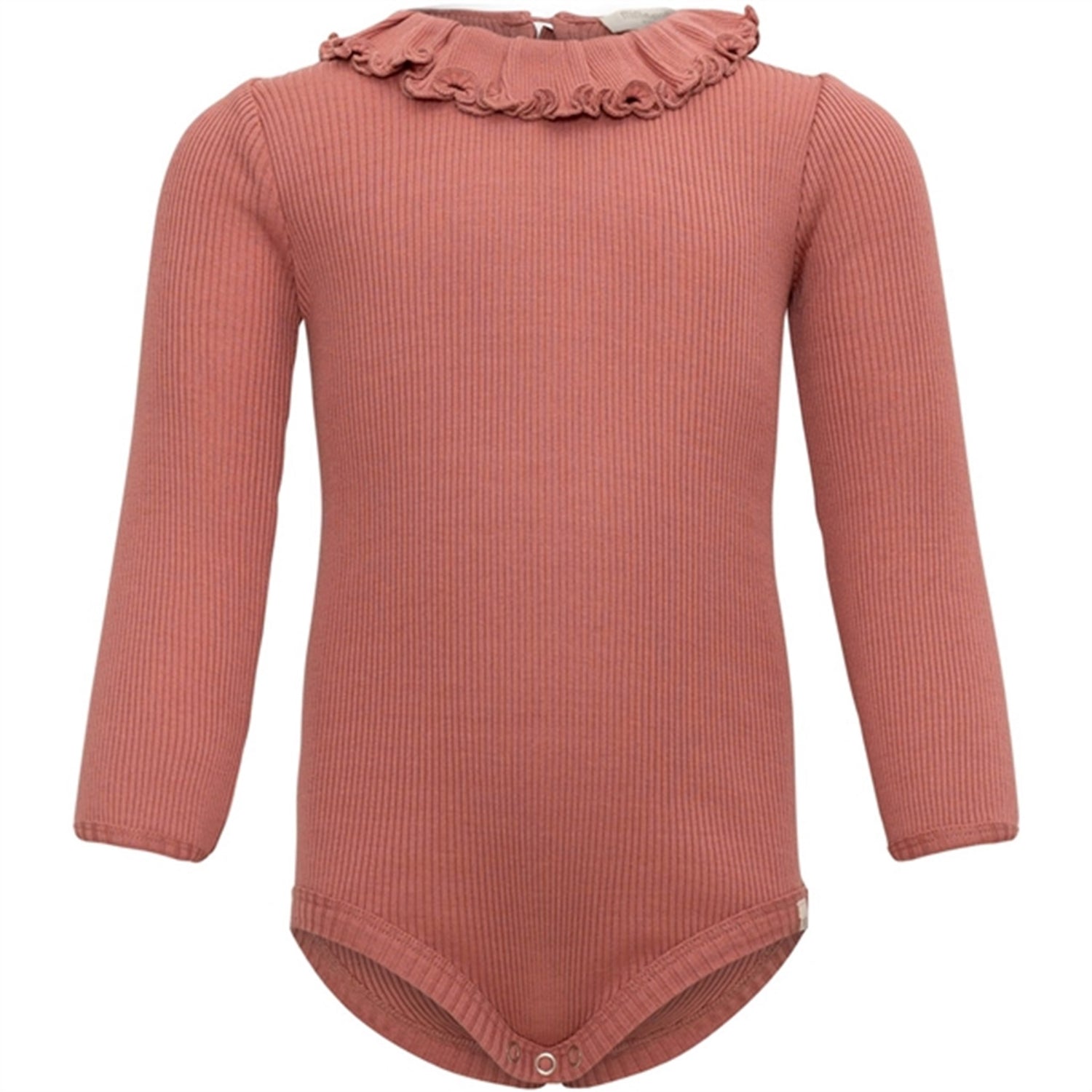 Luxurious basic body. Knitted in a beautiful soft silk-cotton blend, with beautiful ruffles around the neck and closes with a fine shell button in the back. Designed for baby's delicate skin, silk helps regulate your child's body temperature and absorbs moisture, keeping them comfortable and dry in all weathers. The bodystocking closes with nickel-free YKK snaps between the legs for quick and easy dressing.