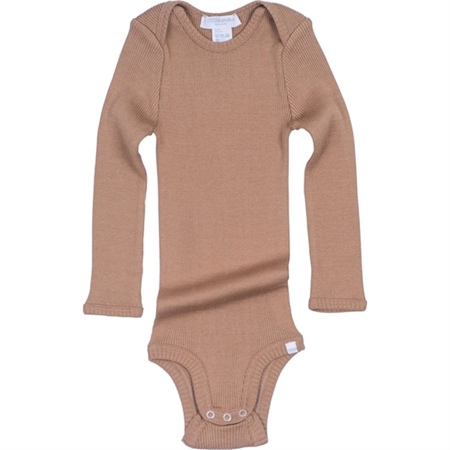 Seamless long-sleeve body in soft silk-cotton blend, with envelope neck opening. YKK nickel-free snap buttons.