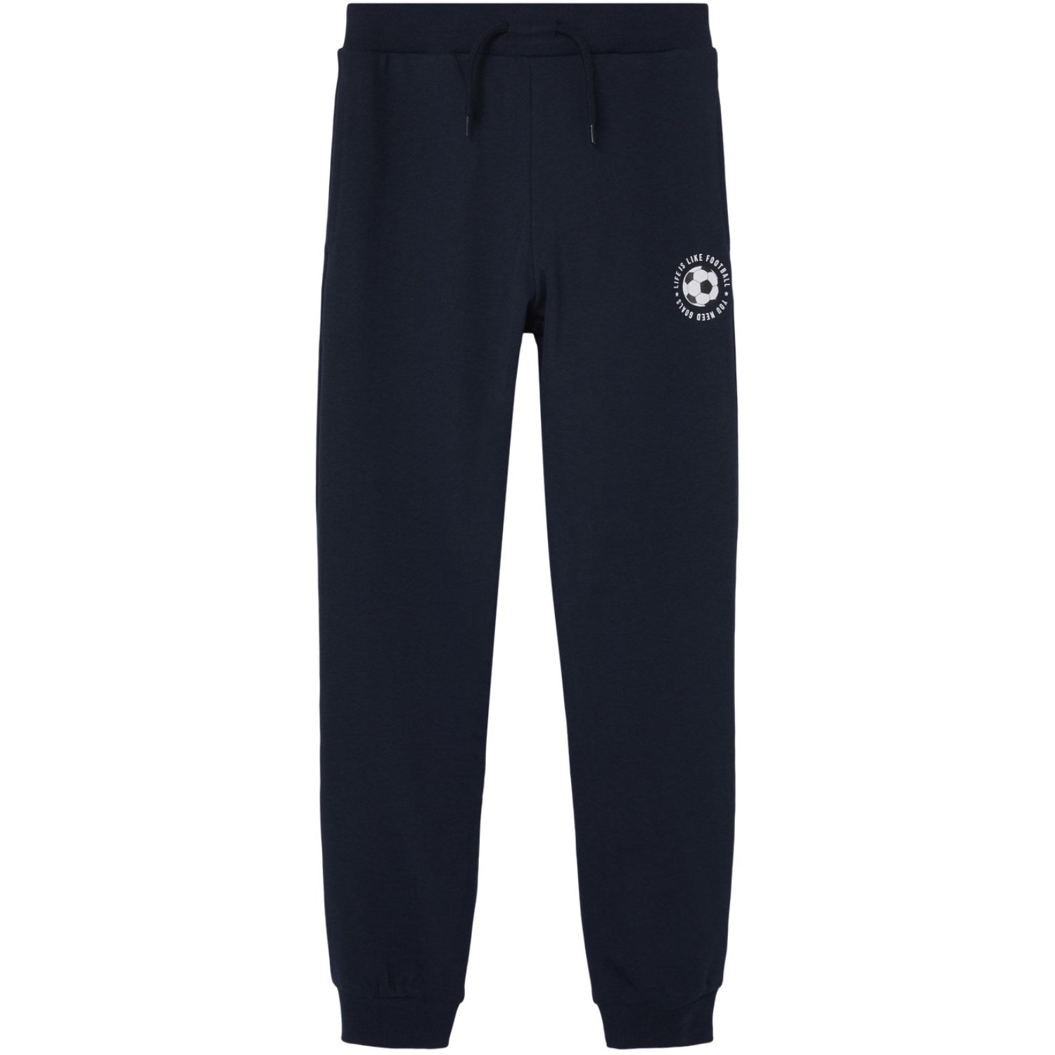 Add a touch of style and coziness to your little one's outfit with Name It Dark Sapphire Jefootball Sweatpants. Made with soft unbrushed sweat fabric that feels comfortable all day long. These trendy sweatpants feature a string fastening, rib hems, and an adjustable waist for the perfect fit. Ideal for playdates or lounging at home, these pants offer both comfort and style in one playful package. Let your child kick back in comfort and fashion with these cool sweatpants.