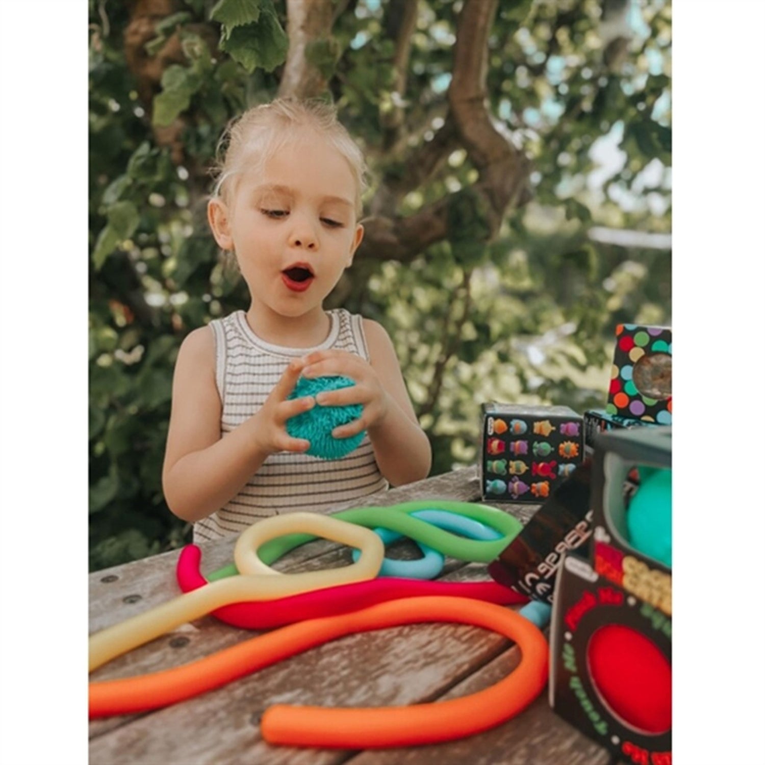 - You can squeeze, stretch, knead or knot the elastic noodles as much as you like