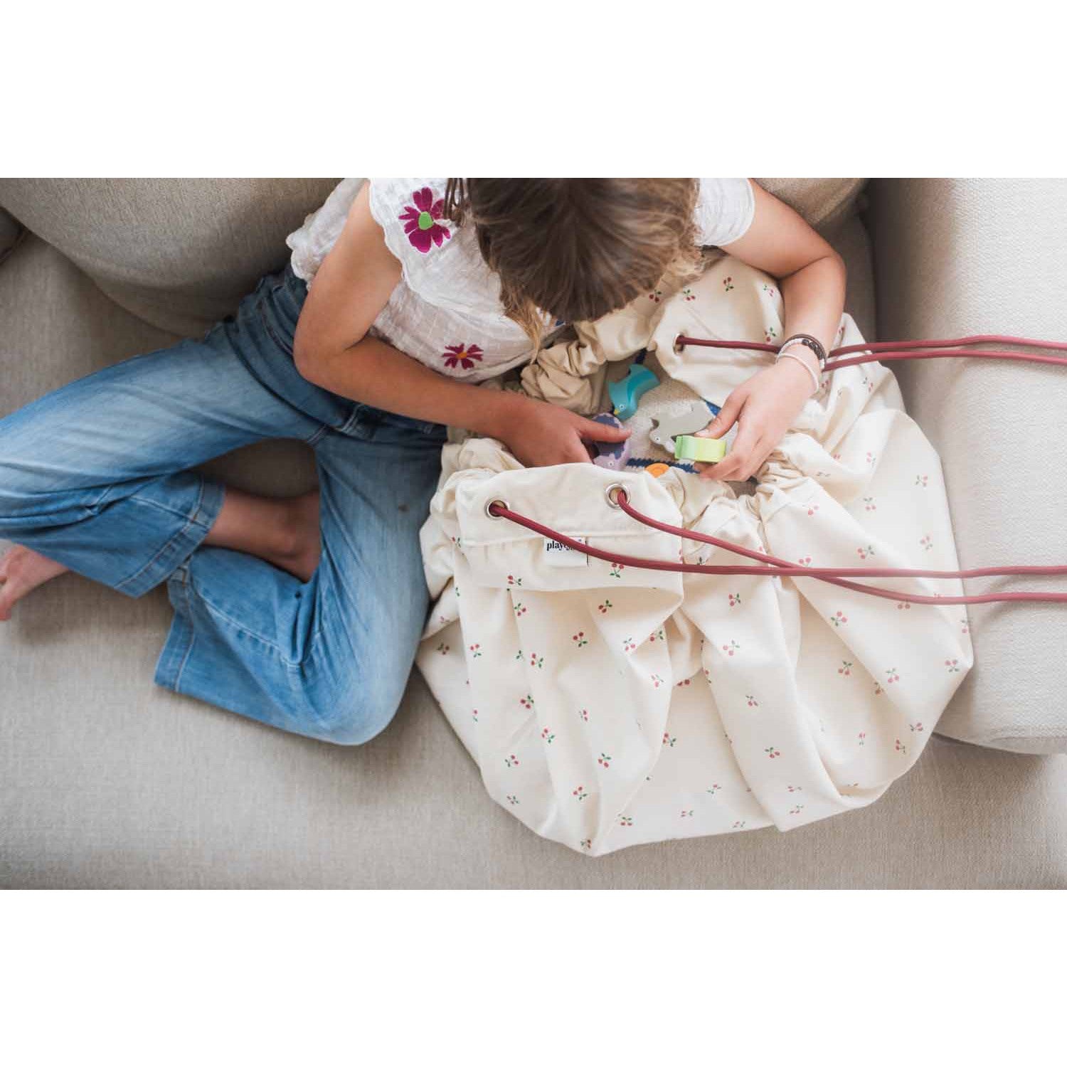 Play&Go Cherry Cherry 2-in-1 Playmat Unleash creativity on the Play&Go Cherry Cherry Playmat! With its fun design, your child will feel like a superhero ready for any adventure. Pack toys in the storage bag, transform into a playmat, and head to a friend’s for endless fun. The 140cm diameter mat is made of 70% cotton and 30% polyester for comfort. Encourage playfulness while caring for the planet with Play&Go Cherry Cherry 2-in-1 Playmat.