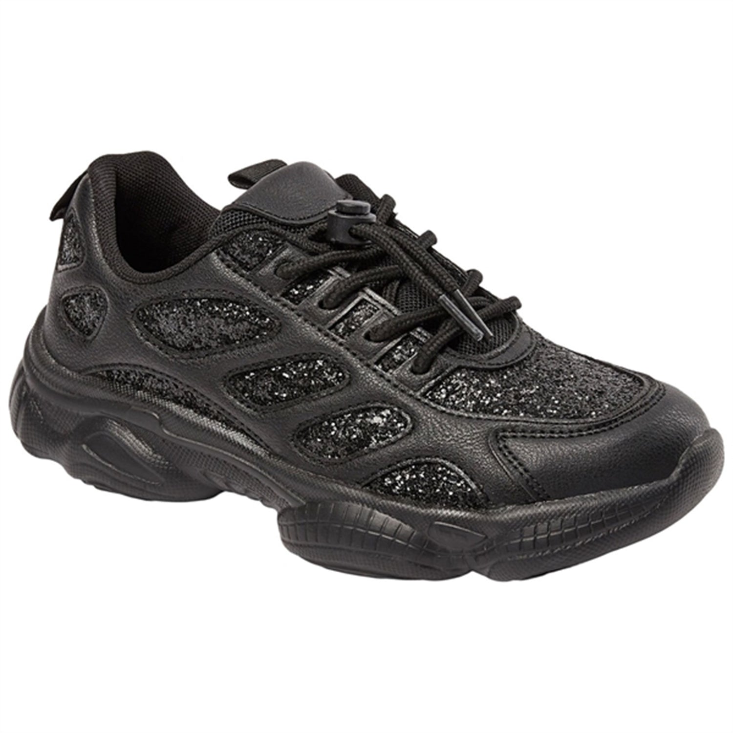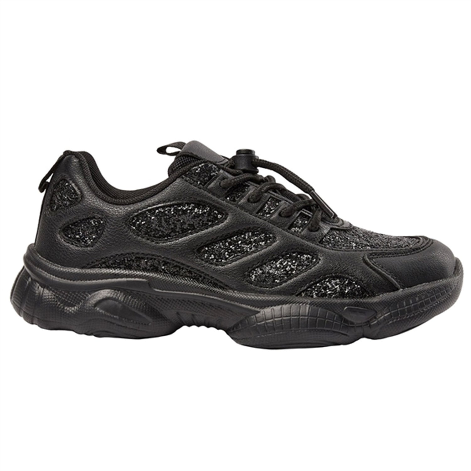 - 50% glitter, 50% Pu, textile, rubber sole