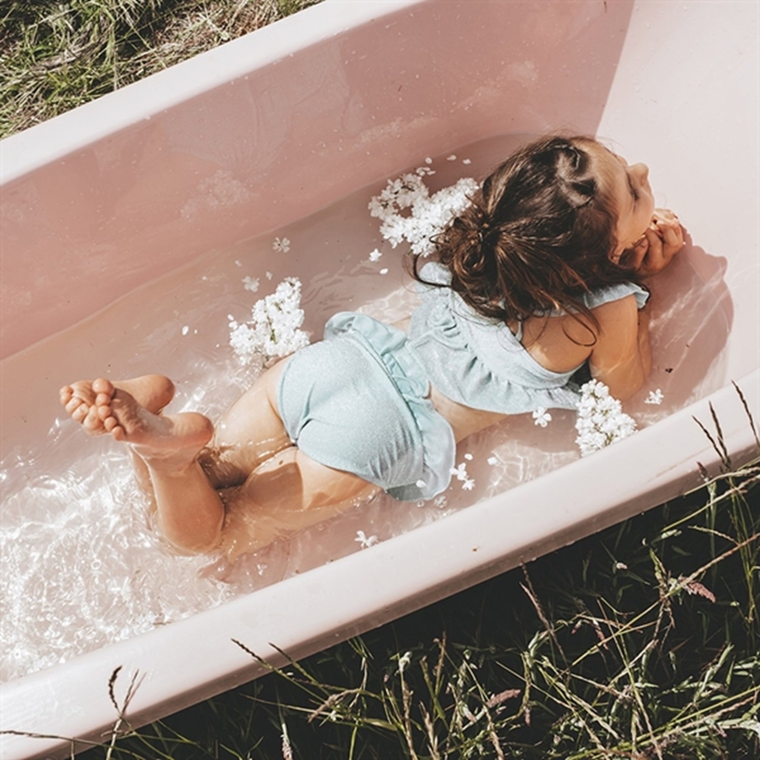 The swimwear has UV 50+ protection.